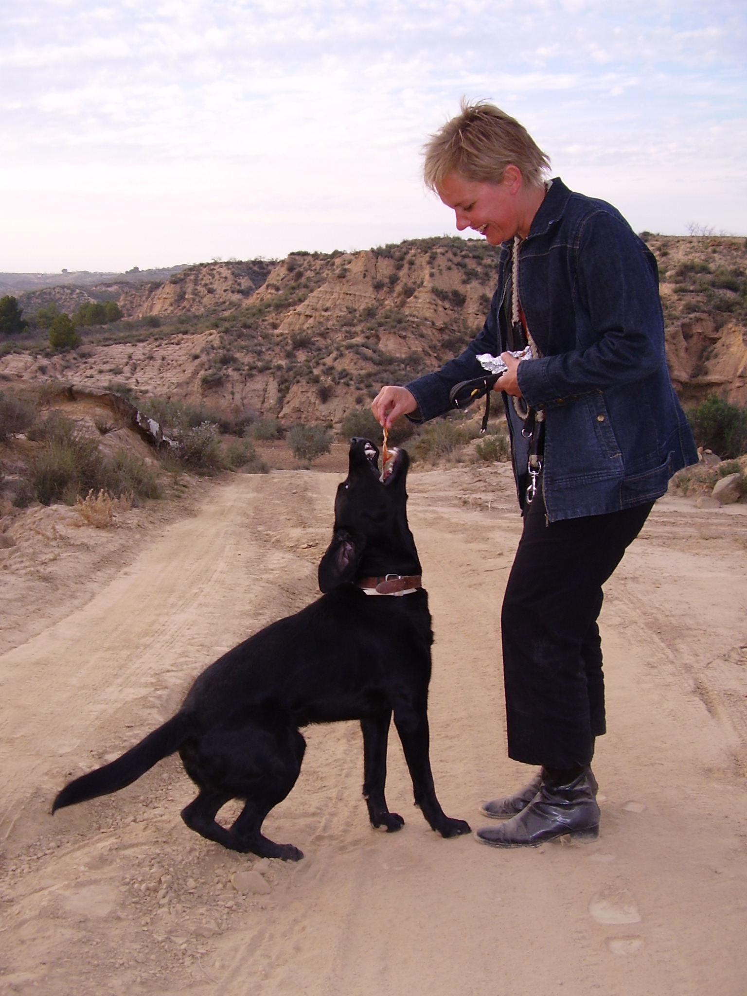 Ik woon hier met mijn Spaanse man en onze zes honden. Hier wonen, werken, leven, het is plukbaar geluk. Dat ook letterlijk, dankzij de groentetuin en de fruit-, amandel- & olijfbomen. En dus ook: onze eigen olijfolie.
